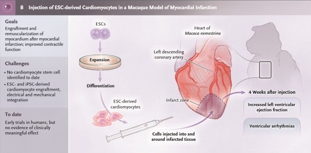 但是研究人员并没有放弃干细胞在心脏领域的应用,早在2015年时,就有报道称,能够将人体胚胎干细胞移植至其他心肌梗死的动物体内,并重建心肌。但是这类的研究并不是十分顺利,当移植到心肌时,将产生心律失常甚至无法正常工作的风险。