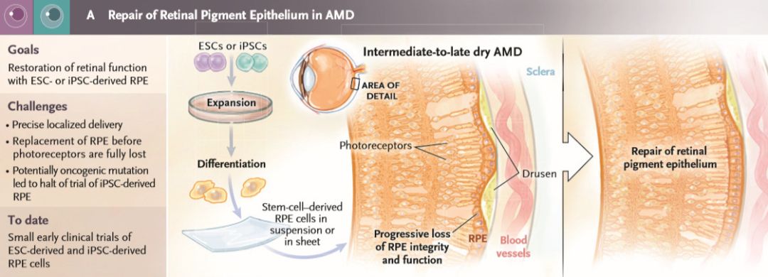除了修复视网膜色素上皮细胞外,干细胞也在角膜和晶状体的修复中取得了显著的进展。