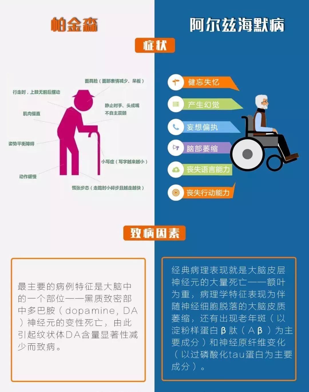 患有帕金森的中老年人会出现健忘、行动迟缓、手脚震颤等现象,这些症状很容易让人联想到阿尔茨海默症(俗称老年痴呆)。有些人经常将这两种疾病混淆,那么这两种疾病到底有什么不一样呢?