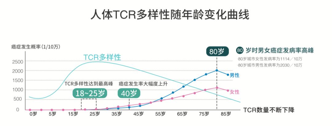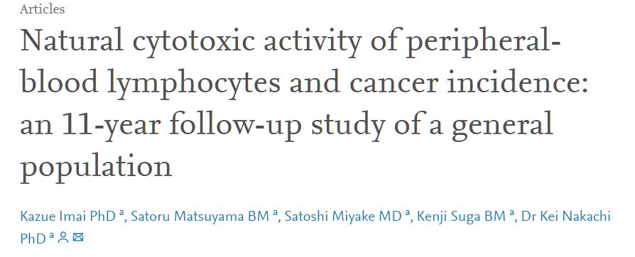 然而研究发现,NK细胞的数量及功能在40~50岁后显著下降。NK细胞的功能逐渐减弱,癌症发病率却随之增加。在对日本中年及老年人随访11年后显示,NK细胞的活性和功能与肿瘤组织的大小、转移以及不良预后息息相关。