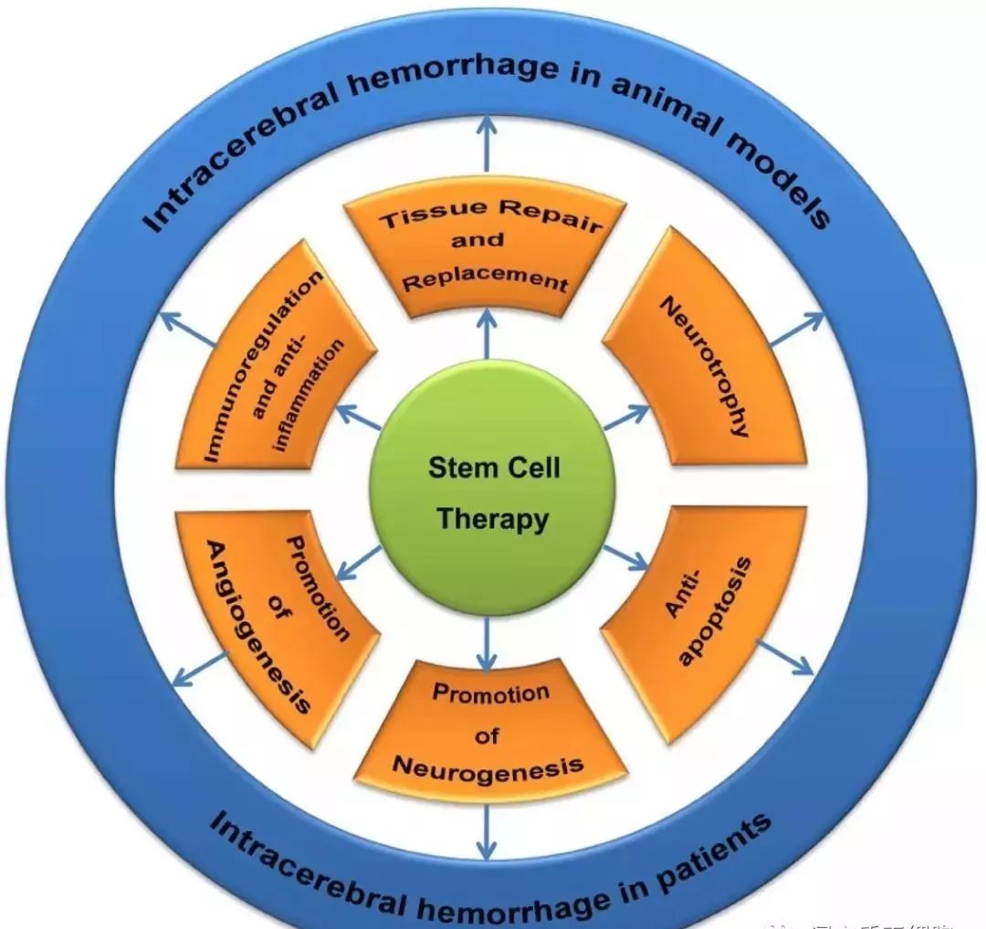 MSCs治疗的最主要目标就是通过抑制免疫反应和消除炎症,从而借助分泌的多种营养性细胞因子保护脑神经细胞,减少神经细胞的损伤和坏死,使得脑出血患者减少脑出血后遗症的发生率和促进康复。