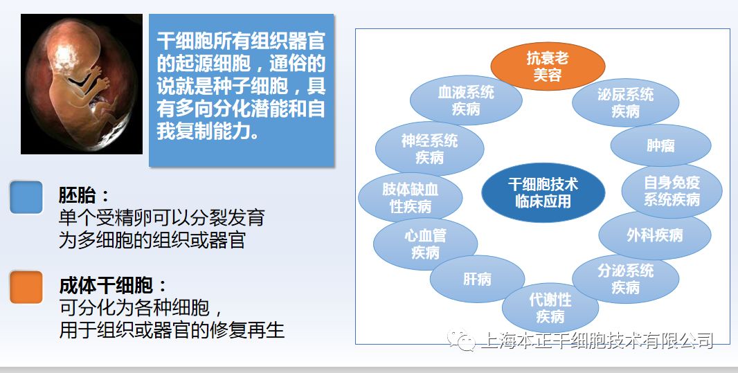 人体的器官、组织、系统之所以出现退行性病变甚至出现障碍,是因为生命构成与运转的最基本单位——细胞过度凋亡和衰老。要解决这个问题,唯一的办法就是增加新生的细胞,修复受损的细胞,激活惰化的细胞,增加干细胞。干细胞是细胞之母。