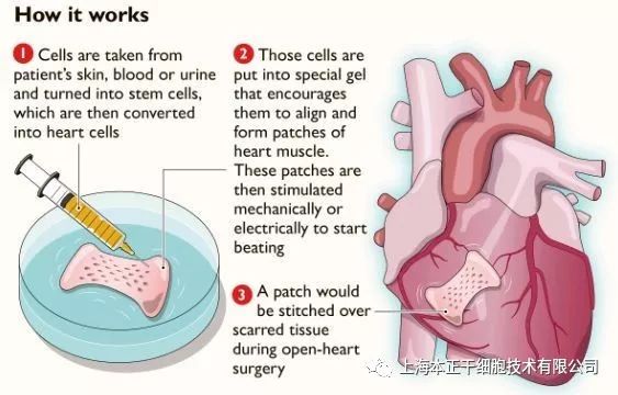 首先从患者的皮肤或血液中提取细胞,通过重编程将这些细胞变成干细胞,然后再诱导干细胞分化成为心肌细胞。