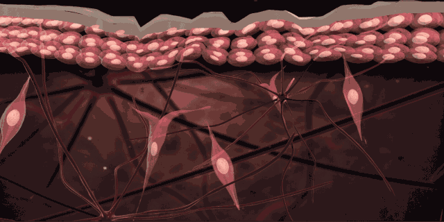 20岁以后,真皮成纤维细胞数量逐渐减少,合成胶原能力降低。同时由于蛋白酶释放增加,使胶原降解增加;弹力纤维尽管含量未见减少,但弹性纤维 网发生卷曲,松弛,失去弹性,真皮乳突层的弹力纤维网减少,甚至消失引起表皮层松弛并形成细刁嚷纹。