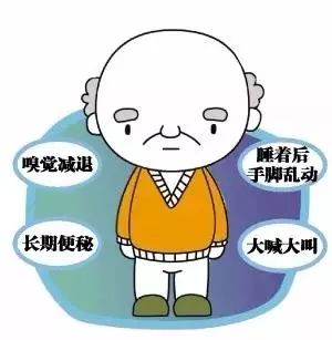 嗅觉减退、便秘、睡眠行为异常和抑郁等。