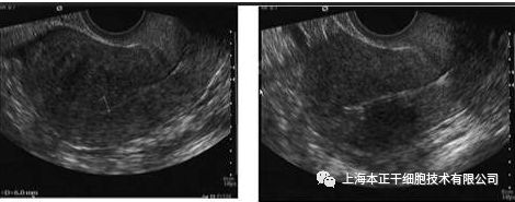 干细胞治疗方案:对患者刮宫后,在产生引导下用注射器经宫底及宫腔内注射入患者干细胞悬液,术后辅以阿司匹林和周期性激素治疗。超声检查结果显示患者术后子宫内膜再生较好,并且,患者通过体外受精(in vitro fertilization,IVF)成功怀孕,随访至妊娠第八周胎儿生长良好。