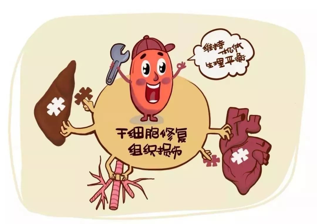 各组织器官出现问题时,干细胞可以通过复制和分化对受损组织进行修复,维持机体生理平衡。所以干细胞就像一个聪明的维修师一样,总是自动出现在需要它的地方,自动的把受损的组织器官修复