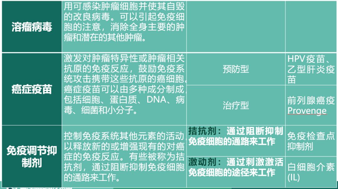 目前来说,免疫疗法一共可以分为五大类:靶向抗体、过继细胞疗法、溶瘤病毒、癌症疫苗以及免疫调节剂。