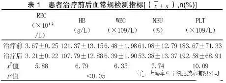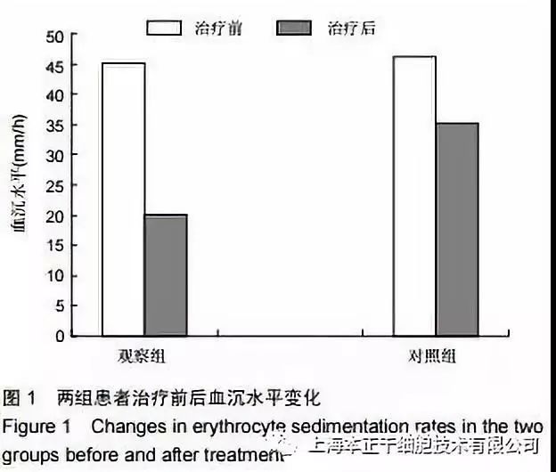 2016年专家们利用间充质干细胞治疗强直性脊柱炎病人,该治疗选取2012年1月至2013年11月开始治疗强直性脊柱炎患者36例,部分患者进行过传统常规治疗,效果不明显并且副作用大。患者均有不同程度的脊柱和关节疼痛,且表现出骶髂关节炎。36例患者均给予一次1×107间充质干细胞30ML静脉滴注治疗,在治疗后进行4~11月的随访,所有患者在晨僵时间、关节疼痛、关节肿胀、血降指数及CRP指标均有所改善。患者进行复查时,对患者进行血常规及肝肾功能检查,检查结果显示治疗效果明显,与传统治疗相比,差异具有统计学意义(P<0.05)见表