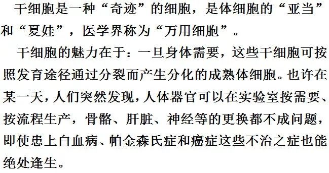 间充质干细胞(MSC)是干细胞家族的重要成员,来源于发育早期的中胚层,属于多能干细胞,因其具有多向分化潜能、造血支持和促进干细胞植入、免疫调控和自我复制等特点而日益受到人们的关注。 一直以来,新生儿出生后,脐带组织作为废弃物被直接丢弃,随着科研治疗的不断深入,人们发现脐带组织中存在大量的间充质干细胞,且具有极其广泛的临床应用潜能:在治疗多个系统疾病和组织器官损伤,如肝硬化、小儿脑瘫、脊髓损伤、系统性红斑狼疮和急性心梗等多种难治性疾病,以及美容、保健、抗衰老等方面显示了巨大的应用潜力。
