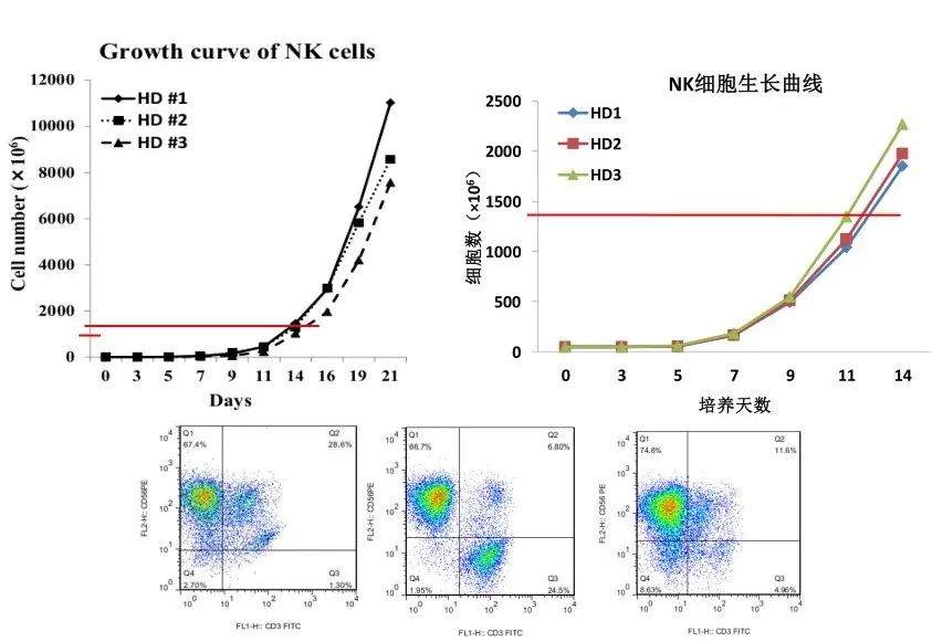 在日本NK细胞扩增技术的基础上,我们对细胞因子组合进行了优化,使细胞扩增的效率明显增加,扩增时间缩短了3天左右,一方面可以快速用于肿瘤治疗,为患者争取治疗宝贵时间,另一方面,也保证了NK细胞的年轻态和高效杀伤力。