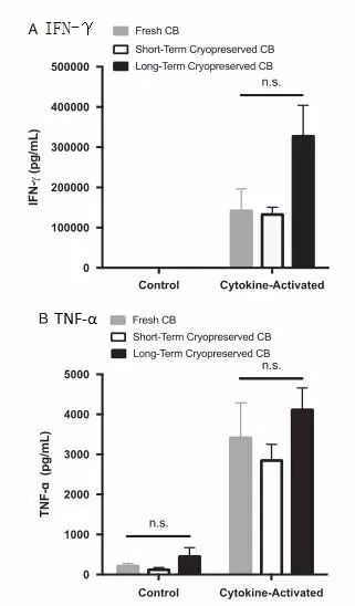 三种脐带血来源NK细胞分泌抗肿瘤细胞因子的比较