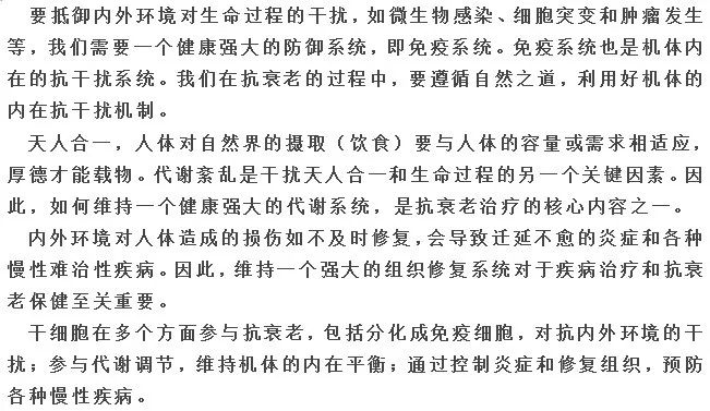 通畅或强大的代谢能力是长寿和抗衰老的关键。一方面,我们可以通过控制饮食,减轻代谢器官的负担,达到维持代谢系统通畅的目的;另一方面,我们也可以通过药物或干细胞的帮助,增强代谢器官功能,促进代谢,从而达到抗衰老保健的作用。