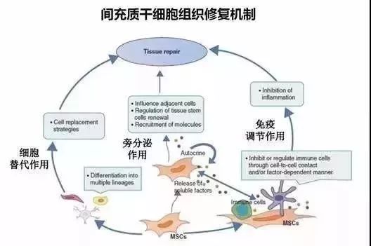 3.旁分泌与免疫调节:干细胞不仅分泌多种免疫调节因子,还可抑制转化分泌肝细胞生长因子(hepatocyte growth factor,HGF)、IL1、IL6等促炎症因子释放促进组织再生、抗纤维化作用。
