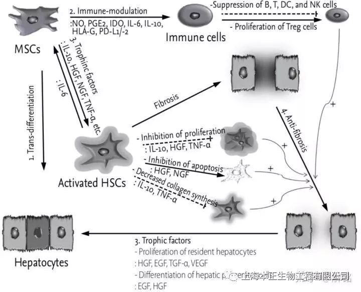 1、肝细胞样细胞转分化,2、免疫调节,3、营养因素,3、抗纤维化,4、抗氧化。