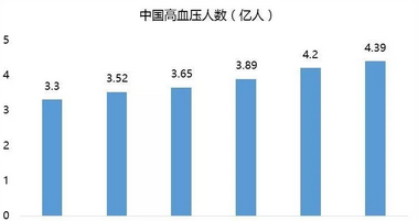 中国的高血压患病率,在1958年仅5%。近年我国成人高血压患病率已高于25.5%,每百名成年人就有 25人是高血压患者,全国心血管病人达2.9亿。
