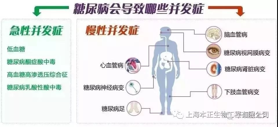 糖尿病的并发症危害非常大,当出现并发症时,说明血糖长期控制得不好,一定要引起重视,并发症有:1.糖尿病眼病,视力下降,长期下去控制不好会导致失明;2.糖尿病肾病,后果肾坏死,要换肾,做透析;3.糖尿病足,足部神经坏死,四肢溃烂等等。最终截肢!糖尿病一定要控制好血糖,不要让并发症出现,一旦出现并发症,很难医治,而且是一个长期的消磨人意志的慢性病。糖尿病足是糖尿病的严重并发症之一,由糖尿病患者下肢血管病变、周围神经病变或感染等所致。据统计,与非糖尿病患者相比,糖尿病患者因严重下肢缺血性疾病而截肢的发生概率要高40倍。干细胞在体内能够分化为血管内皮细胞和平滑肌细胞、分泌大量的促血管生成因子从而形成新生血管,因此在糖尿病足的治疗中十分具有前景。