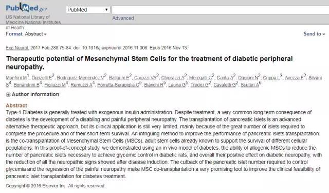 近年来,国内外已经开展临床治疗探讨干细胞移植治疗糖尿病周围神经病变的疗效。2013年,科学家们观察了人脐带间充质干细胞移植治疗糖尿病周围神经病变的疗效,共有32名名糖尿病周围神经病变患者参与。结果表明,人脐带间充质干细胞移植可改善糖尿病周围神经病变的临床症状及神经电生理,是一个安全、有效的糖尿病周围神经病变治疗的新方法。糖尿病勃起功能障碍患者通常容易发生动脉粥样硬化,阴茎动脉管腔变窄,供血量减少而造成勃起不坚或勃起难以持久,形成阳痿或因代谢紊乱引起神经功能低下和性激素减少,进而降低了性兴奋性,引起性功能减退。据统计,男性糖尿病患者中伴发阳痿者高达50%以上,女性患者约50%有性欲减退现象。某三甲医院的专家小组探索了间充质干细胞治疗糖尿病性勃起功能障碍的案例,结果证实了阴茎海绵体内移植间充质干细胞对改善糖尿病性勃起功能障碍和提高海绵体组织中内皮和平滑肌含量有一定的效果。另外三甲医院对间充质干细胞治疗糖尿病性勃起功能障碍的治疗发现,干细胞分泌的因子(如VEGF等)在这个过程中起到了一定的作用。视频:间充质干细胞治疗糖尿病