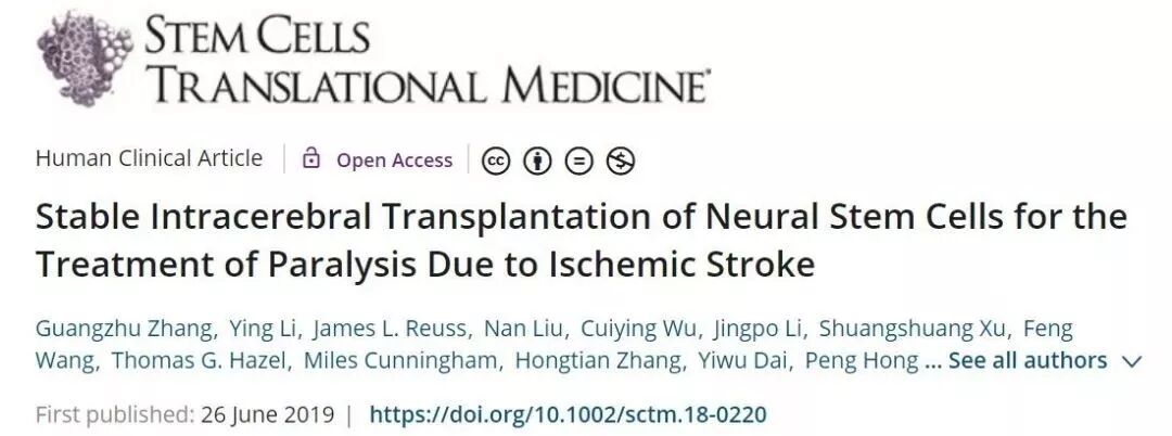 除此之外,2018年国家重点计划资助“神经干细胞脑内精准移植治疗脑卒中的临床治疗”,该项目在多家临床研究中心开展。
