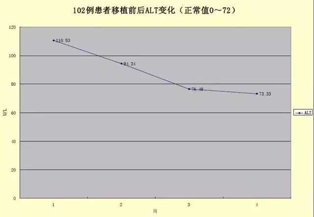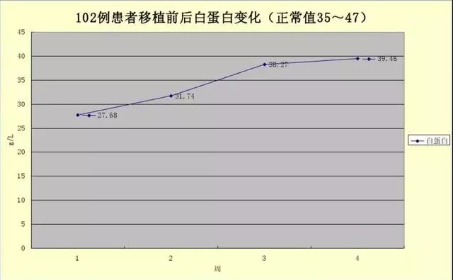√ 某三甲医院郭主任等用干细胞移植治疗肝硬化102例报告,术后复查提示:血浆蛋白改善在各项指标中最显著,其次为凝血功能的改善,可改善肝脏合成蛋白功能,对目前肝硬化腹水的患者具有积极意义。第2个明显改善的指标为纤维蛋白原和凝血酶原时间,同样代表肝脏的合成功能提高。