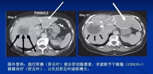 这些移植的干细胞一方面能根据周围微环境分化成新的肝脏功能细胞;一方面还能      够“催醒”自身肝脏细胞“再生”;另一方面通过干细胞分泌的各种细胞因子,修复和营养受损的细胞。