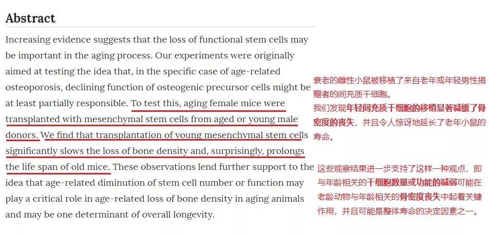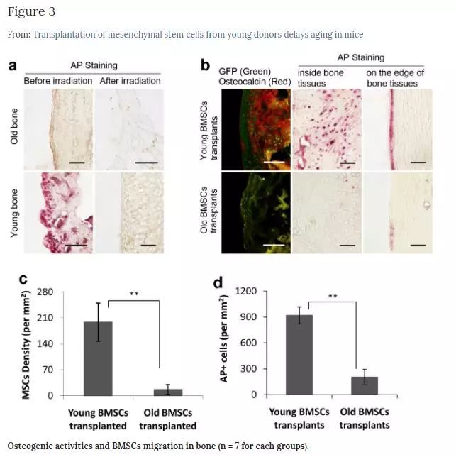 而利用动物模型做的治疗表明,间充质干细胞可以显著减缓骨密度的损失,并能延长衰老小鼠的寿命。