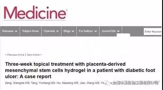 国际期刊《医药学》在其官方网站上在线发表了间充质干细胞凝胶治疗糖尿病足溃疡的案例