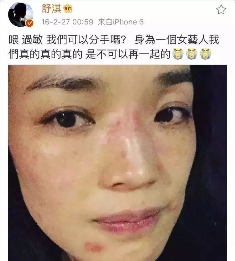 演艺圈里舒淇是出了名的易过敏皮肤。