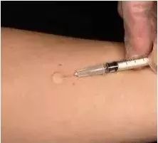通过皮内注射过敏原,经过一定时间后观察皮肤的反应,根据皮肤反应的情况确定是否对这种过敏原过敏。