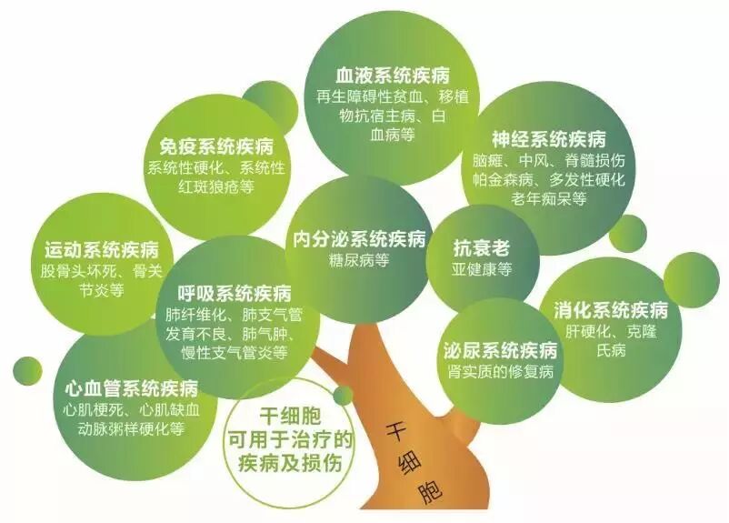 干细胞是细胞之母。人生在胚胎形成和发育过程中,就是由最原始的没有分工的干细胞,按照遗传信息,不断分化成各个器官、组织、系统的细胞,从而形成各个器官、组织、系统。细胞的转化是不可逆的,细胞一旦分工,终身不能改变其“岗位”和“职能”。然而,随着年龄的增长,身体内的干细胞数量得不到补充,器官功能不断下降,老化,以致出现功能障碍和疾病。通过干细胞移植,使机体产生更多的年轻细胞,这样,器官、组织的功能就得以改善和巩固,让器官组织年轻化、让衰老更加缓慢。身体就像是房子,如果老细胞死亡了,那么就好比这幢房子有许多墙砖坏了,如果没有新的墙砖来更新维修,必将是一幅破破烂烂的样子,成为危房。而表现在身体上就会出现各种衰老现象和退行性疾病。比如,老年人常见的贫血症就是红细胞少了,关节炎就是软骨细胞再生不足,肌肉萎缩就是骨骼肌细胞凋亡了,心、肝、脾、肺、肾功能下降,以及抗病力下降,也都与细胞再生能力不足有关。细胞总量减少了,人体就像是火炉缺少了煤。火炉因少煤而不旺,人体则会因为细胞减少而各器官功能下降,老年人、老病号总会觉得浑身乏力、懒的动弹,不是这疼,就是那疼,整个人都会是病恹恹的。人体超过70%的细胞死亡而得不到再生时,我们的生命也就终结了。生活中,之所以会有那么多老病号久治不愈,之所以又会有些人的病总是反反复复发作,其实道理很简单,就是因为这些人只注重通过药物,来消灭表象,而忽略组成人体最基本的细胞。所以,我们要想让身体摆脱疾病的困扰,就必须补充新的细胞,把损伤的细胞修复好,让细胞得以再生。总而言之,细胞的再生就是人体最重要的自我修复、自我治疗机制。