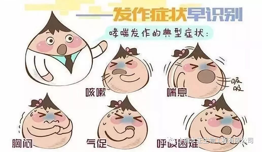 表现为发作性呼气性呼吸困难或发作性胸闷和咳嗽,伴有哮鸣音。严重者呈强迫坐位喘坐呼吸,甚至出现发绀等;干咳或咳大量白色泡沫样痰。部分患者仅以咳嗽为唯一症状。哮喘症可在数分钟内发作,经数小时至数天,用支气管舒张药可缓解或自行缓解。在夜间及凌晨发作和加重哮喘的特征之一。有些患者可在运动时出现胸闷、咳嗽和呼吸困难。
