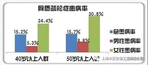 随着人类寿命的延长和社会老龄化进展,我国正快速进入老龄化社会,目前我国大于60岁的老年人约2亿,各种老年病的威胁日益严重。据统计大于50岁人群中骨质疏松发病率女性为22%。男性为15.%,全国约有7千万骨质疏松患者,约有将近2·5亿人存在低骨量。
