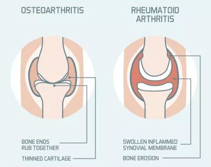 RA不同于骨关节炎(OA),RA属于自身免疫性疾病,常常破坏四肢的小关节为主。