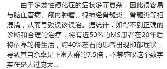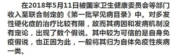 自体免疫性疾病是人体免疫系统攻击自身组织造成的,而它的发病部位是人体的“指挥中心”——神经系统。这就是多发性硬化症(Multiple Sclerosis),英文简称MS。“渐冻人”、“瓷娃娃”是大众比较熟知的罕见病,相比这些,多发性硬化症这个罕见病却一直不为人们所熟悉。MS是一种极其罕见的疾病,主要损害脊髓、大脑以及视神经。"硬化"的意思是结疤,"多发"是指神经系统的多个部位受到累及,会因神经损伤导致疤痕形成。