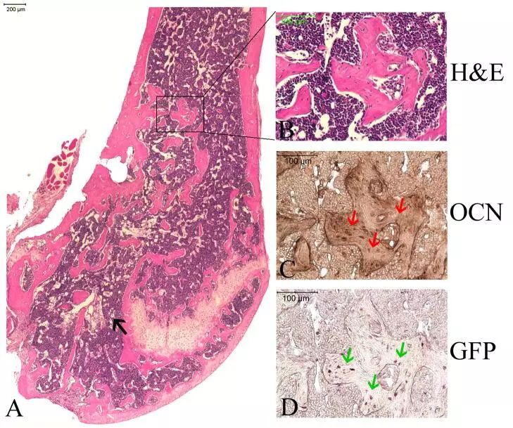 在2010年的一项报道中,科研人员发现,直接将间质干细胞和作为细胞外基质的Ⅰ型胶原混合后注射到患有成骨不全症的小鼠(OIM)股骨的骨髓腔中,间质干细胞分化成为成骨细胞和骨细胞并在体内合成高密度新骨,显著改善了小鼠长骨的强度。这说明了用干细胞治疗成骨不全症疾病的可行性。