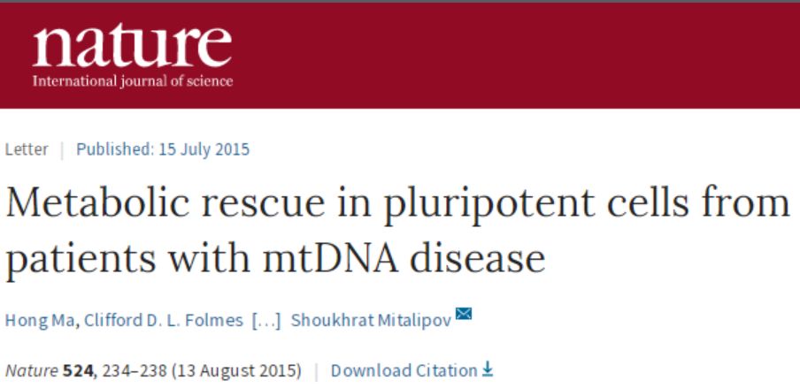 2015年,科研专家发布了一项科研成果于《Nature》,科研人员通过结合基因治疗和干细胞技术治疗线粒体疾病。