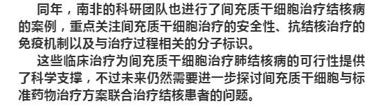 尽管人体具有强大的免疫系统,但结核分支杆菌还是逃脱了宿主的免疫,建立起了一种持续感染的状态。间充质干细胞是干细胞家族的重要成员,具有多向分化潜能、造血支持和促进干细胞植入、免疫调控等特点,为结核病的治疗提供了新的思路。