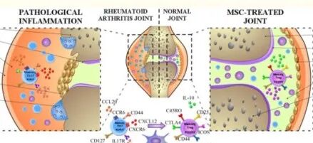 ④间充质干细胞激活后分泌多种细胞因子,可以阻抑炎性细胞介质,减少骨关节、滑膜破坏,有效地控制病情的进展;
