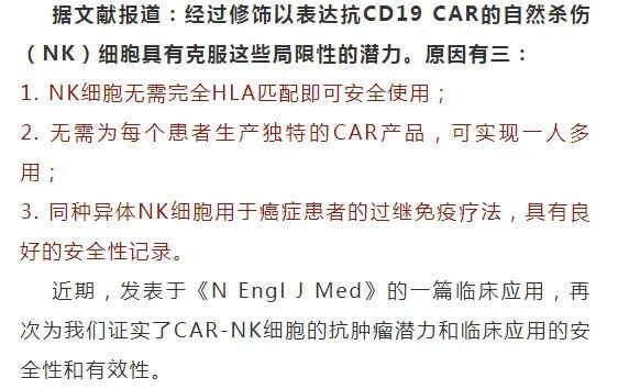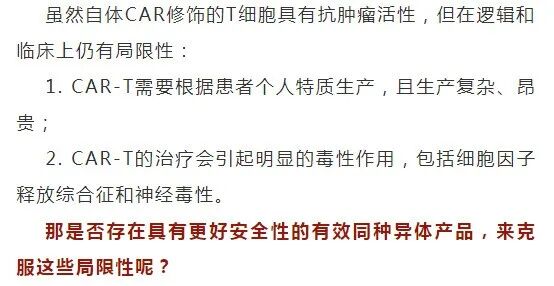 CAR-NK解决了困扰CAR-T技术的最大问题—— 细胞因子风暴的风险问题,且无毒副作用,临床应用更安全,有效率更高,抗癌更具广谱性。