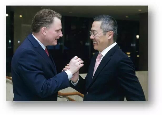 麦迪舜医疗集团主席汪晓峰先生(右)同梅奥医疗集团再生医学中心主任、C-Cure®技术发明人Andre Terzic博士(左)在亲切交谈C-Cure®技术在中国的临床试验