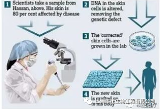 参与治疗的医生在实验室里培养生长出新的皮肤——特征是干细胞经过基因改造(将正常的LAMB3基因转进去),然后把这些转基因皮肤细胞在体外培养成一块块“皮肤拼布”,再贴回去。经过5周,所有的“人皮拼图”终于各归其位,覆盖了男孩80%的皮肤。治疗后没有出现排异反应,免疫系统接受了新皮肤。