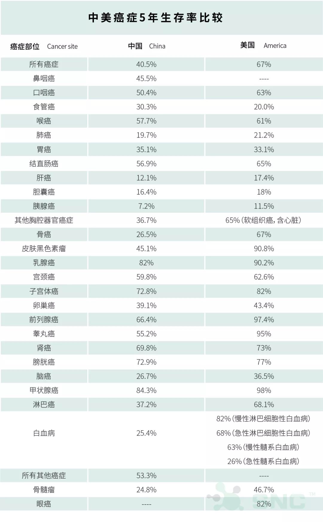 一项数据显示,我国癌症5年生存率较美国还有很大差距,我国目前癌症5年生存率为40.5%,而美国为67%,攻克癌症我们还有更远的路要走,但仍有很大提升空间。